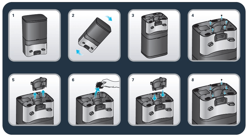 Baza za punjenje treba konstantno biti uključena u struju (automatska funkcija dopunjavanja neće biti omogućena ukoliko baza nije aktivirana).